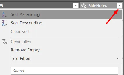 - Click on the small dropdown arrow next to the column header.
