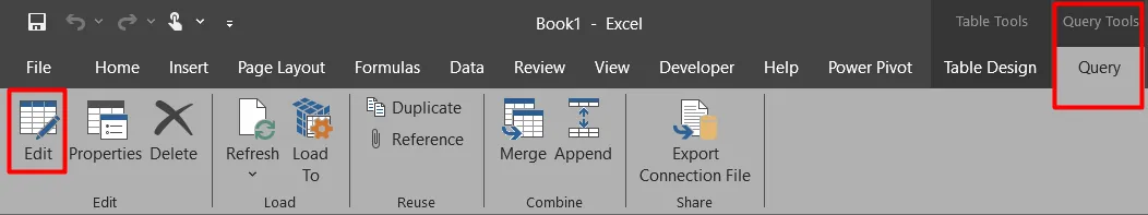 - For each sheet that you want to include in the combination, click on the “Query” or “Transform Data” option. This will open the Power Query Editor for that specific sheet.